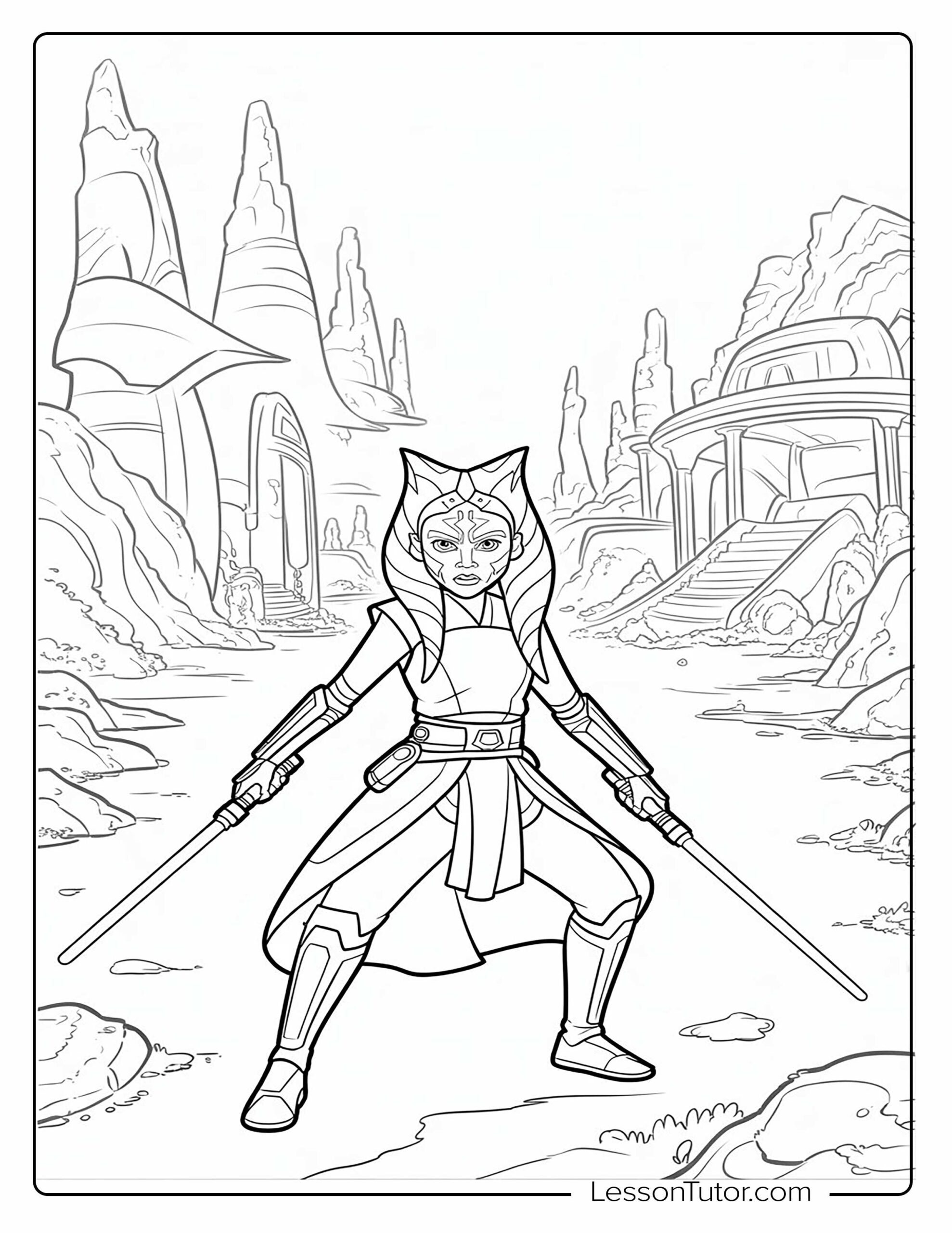 This dynamic collection celebrates the powerful and inspiring character of Ahsoka, offering a variety of scenes that blend action, emotion, and elegance. From detailed close-ups that highlight her facial markings and head-tails to dramatic poses with twin lightsabers, each page invites artists to experiment with shading, motion, and glowing effects. You’ll also find designs inspired by alien landscapes, stars, and mystical Force energy, adding a cinematic feel to every illustration. Whether you prefer clean outlines or more detailed sci-fi artwork, these Ahsoka Coloring Pages provide endless opportunities for creative expression and imaginative storytelling.