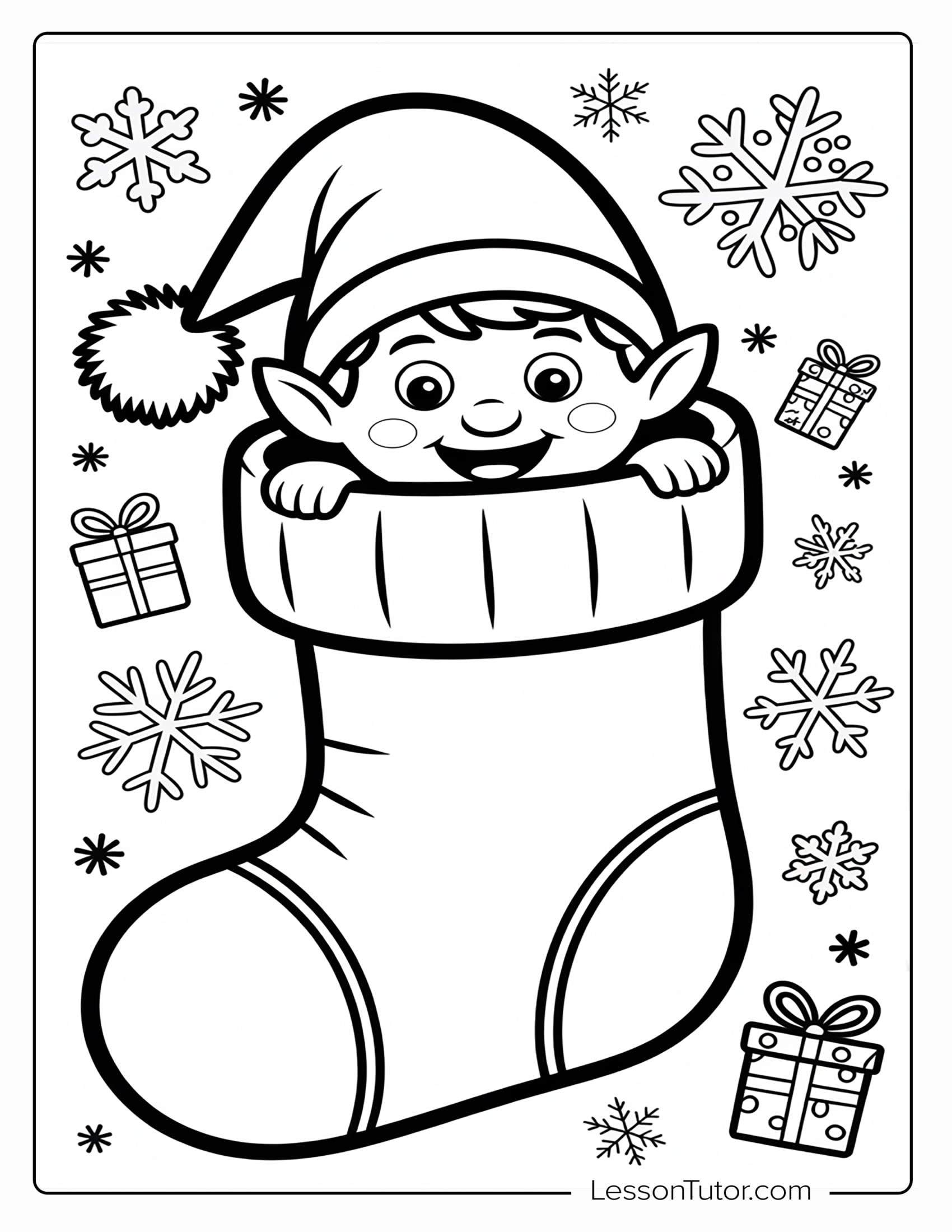Embrace the playful spirit of the season with 10 delightful collection of Elf on the Shelf–inspired coloring pages, perfect for relaxing and sparking holiday imagination. This cheerful assortment features a smiling holiday elf sitting cross-legged in a cozy pose, a happy little elf peeking out from inside a festive stocking, and a joyful elf riding a curved candy cane with playful energy. Whether you’re creating seasonal decorations, planning family activities, or adding a touch of Christmas fun to quiet moments, these charming elf designs offer a wonderful way to enjoy creativity, warmth, and holiday magic throughout the winter season.