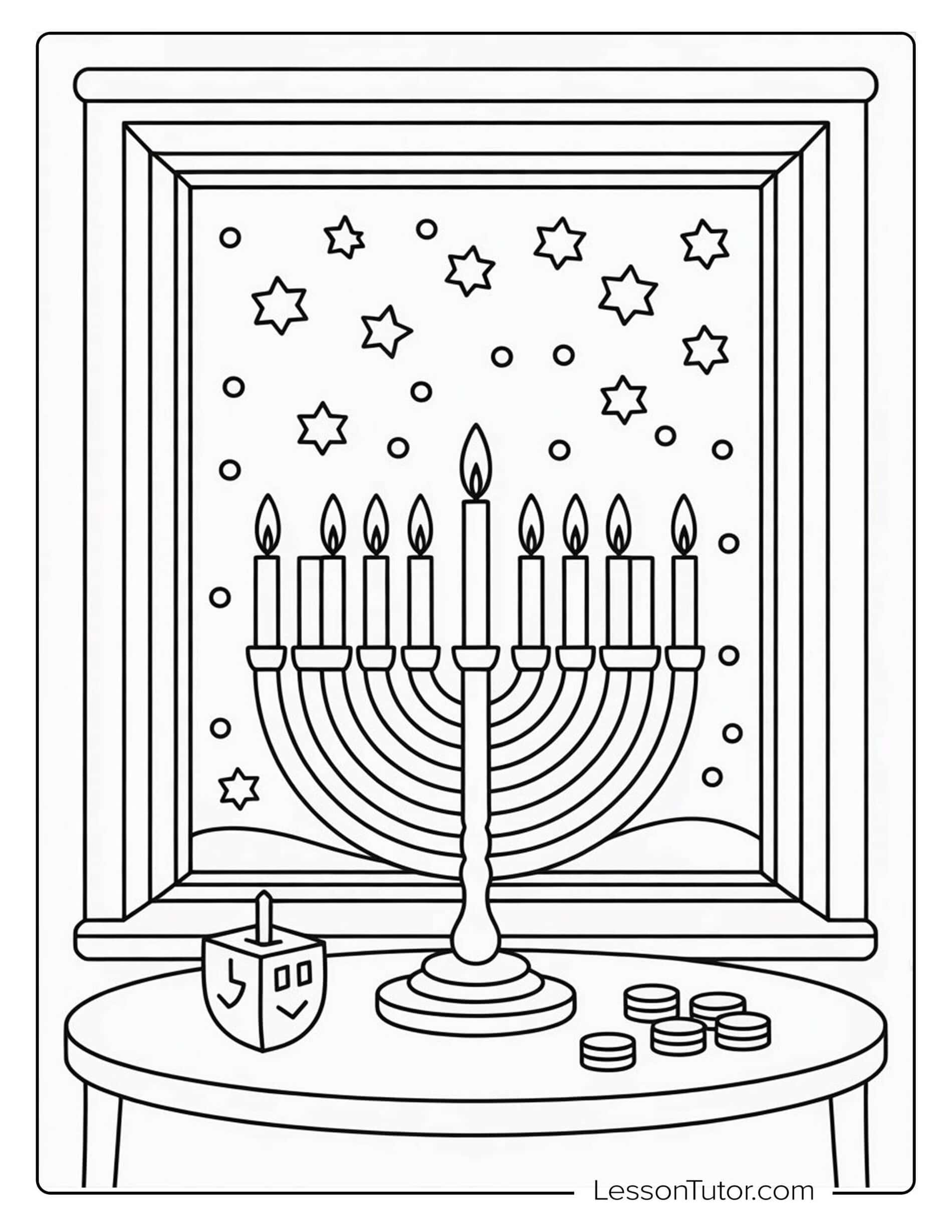 This Hanukkah-themed coloring collection features drawings of menorahs with candles, spinning dreidels, gift boxes, festive patterns, and simple holiday decorations. After coloring, pages can be turned into handmade holiday cards, folded into small gift tags, or used as placemats for a Hanukkah table. Finished pages can also be displayed as part of seasonal décor or assembled into a small holiday activity booklet. These ideas help children use Hanukkah Coloring Pages not only for coloring practice but also for simple crafts connected to real holiday traditions.