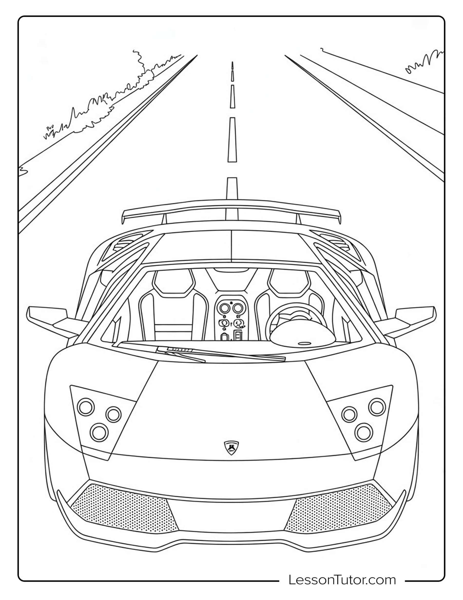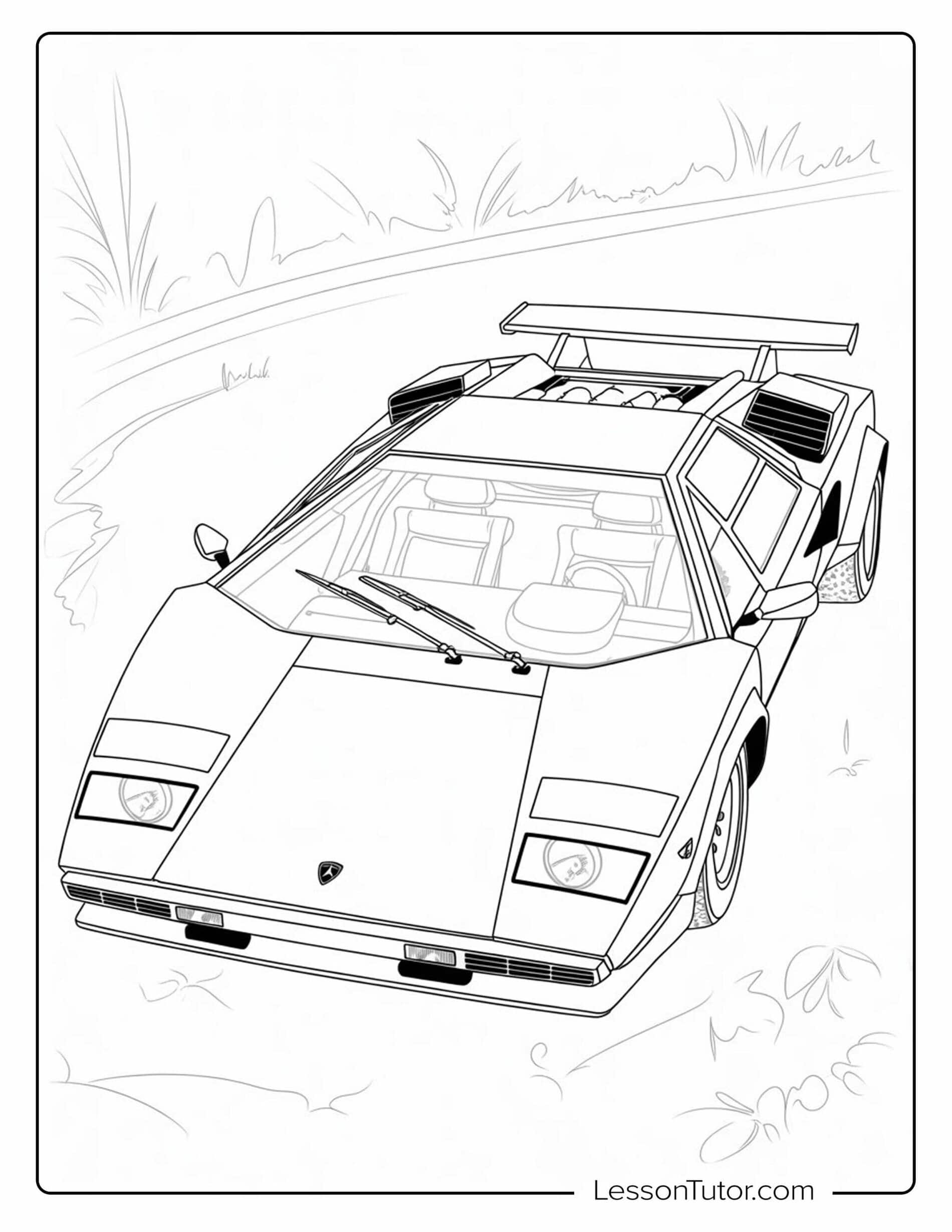 Download 10 free, high-resolution printable Lamborghini Coloring Pages and bring a supercar theme into your creative time. These pages are easy to print and can be used at home, in classrooms, or during car-themed activity sessions. Some illustrations show sports cars parked and ready for display, while others suggest speed and motion on open roads or racing tracks. This collection provides a practical, screen-free activity for children who are interested in fast cars and automotive design.