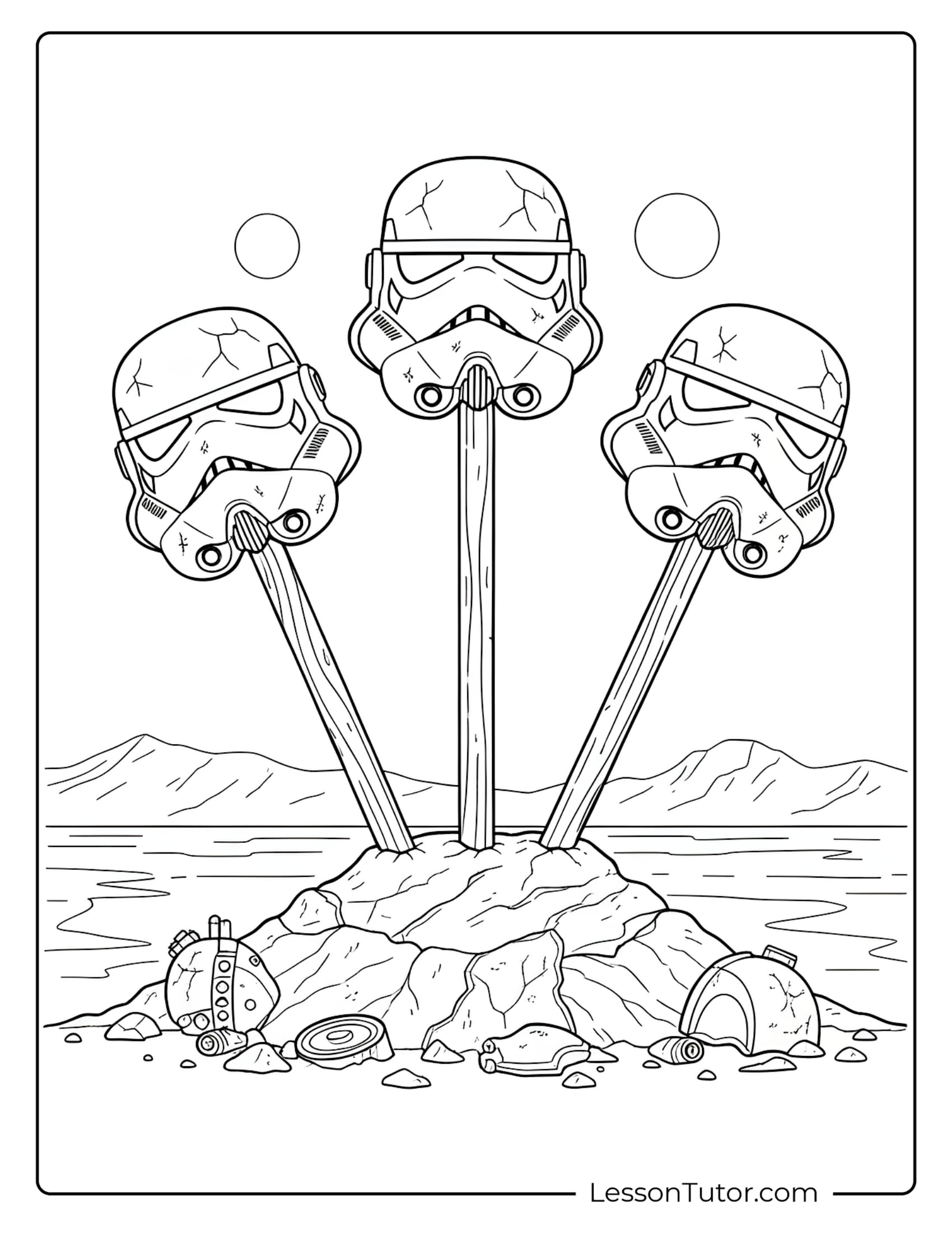 This epic collection brings the Mandalorian universe to life with a series of striking and adventurous scenes that every Star Wars fan will love to color. Discover the iconic Mandalorian crest and his detailed beskar armor, a breathtaking desert landscape with Mando walking beneath twin suns, and an intense battle sequence of the Mandalorian fighting with his spear. Other pages capture the essence of bravery, loyalty, and mystery that define this galactic hero. Whether you enjoy clean outlines, action-filled illustrations, or intricate sci-fi designs, this Mandalorian set offers endless opportunities for creativity and interstellar inspiration.