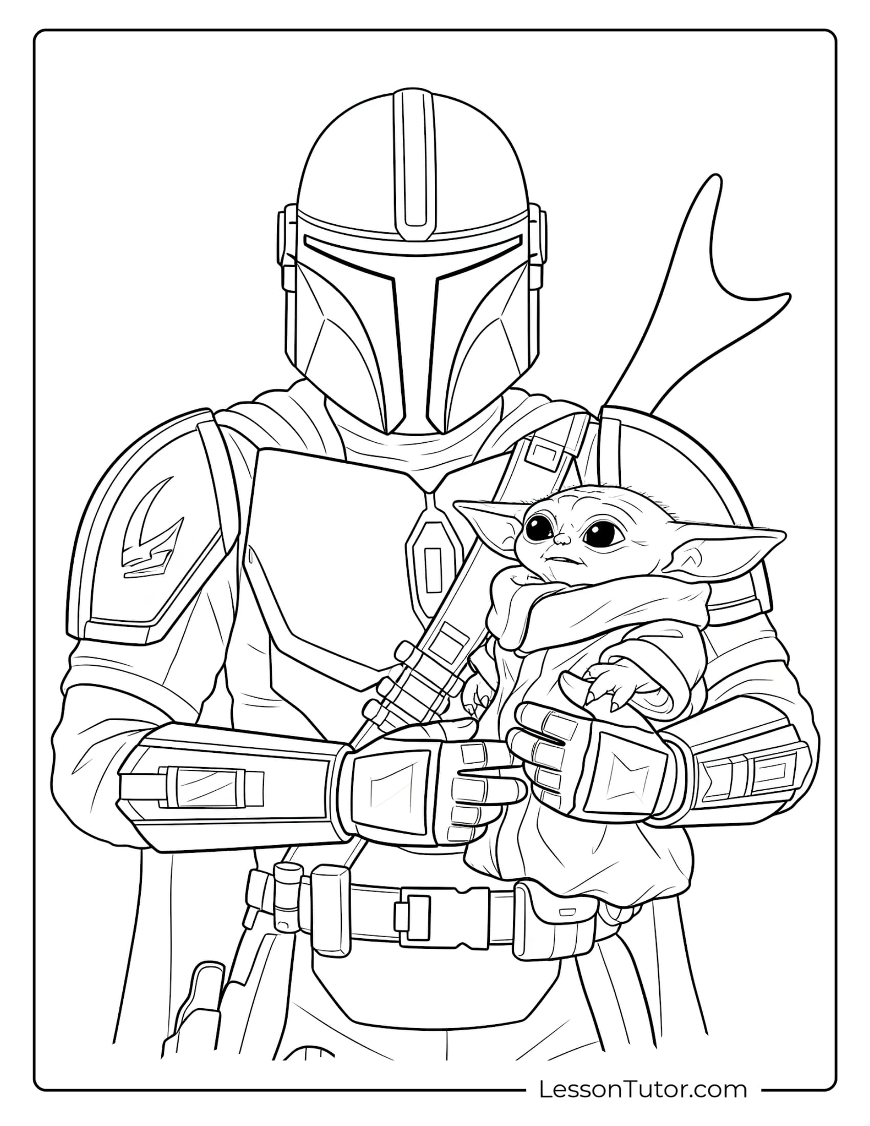 Step into the legendary galaxy of The Mandalorian, where honor, courage, and mystery define every adventure! This exclusive collection of 15 high-quality Mandalorian coloring pages is available as downloadable PDF files, perfectly formatted for A4 paper. Each page features iconic moments, from Mando quietly eating soup beneath his helmet to a close-up of his battle-worn armor, and the heartwarming scene of him holding Grogu close. Free to download and print, this set is perfect for fans, artists, and dreamers who want to explore the Star Wars universe through creativity. Bring these epic scenes to life with your own colors and imagination, this is the way!