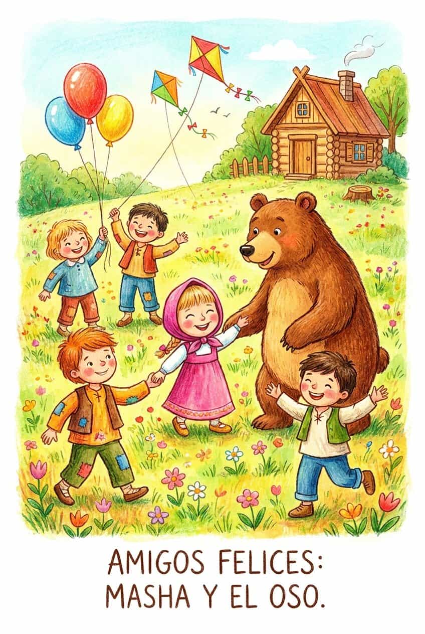 • Adventure Journey Map: Color multiple pages and arrange them in sequence on a poster board to create a visual storyboard of Masha and the Bear’s adventures.