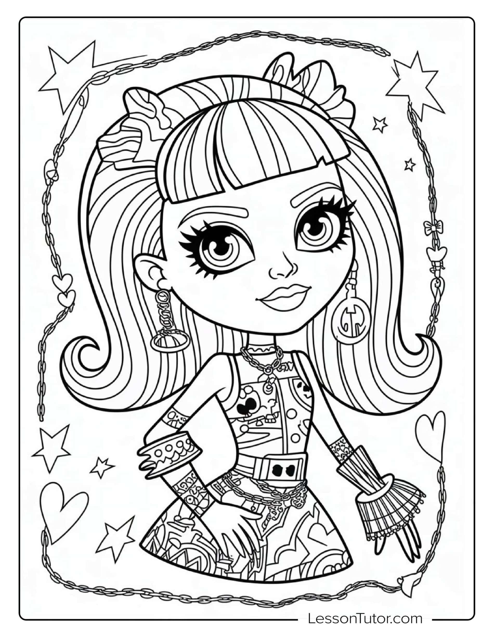 Step into a spooky fun world with this collection of 5 high-quality Monster High coloring pages, inspired by unique characters, bold outfits, and expressive poses. From full-body character looks with stylish details to close-up portraits that highlight makeup, hairstyles, and themed accessories, each page focuses on strong silhouettes and recognizable monster-inspired fashion. You’ll also find designs with layered outfits, patterned textures, and small decorative elements that work well for playing with bright colors and creative combinations. Great for kids and anyone who enjoys character-themed coloring, this set turns Monster High style into a fun creative activity.
