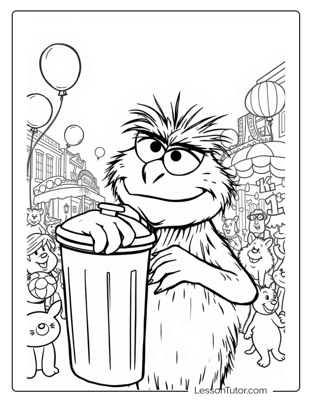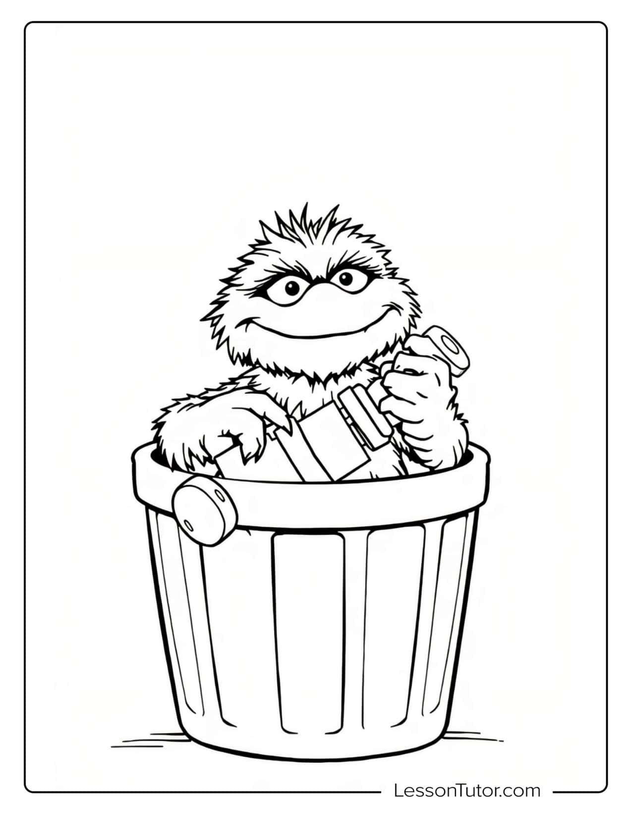 Explore Oscar the Grouch’s wonderfully messy world with this fun collection of 30 high-quality coloring pages! Whether he’s popping out of his trash can, holding a “Scram!” sign, or looking extra grumpy with his arms crossed, these illustrations perfectly capture Oscar’s grouchy yet lovable personality. Follow along as he spends time with his pet worm, Slimey, stacks tin cans, or peeks out of a big pile of trash with a mischievous grin. Every page is packed with fun details, making it a perfect activity for kids and fans of Sesame Street’s most famous grouch.