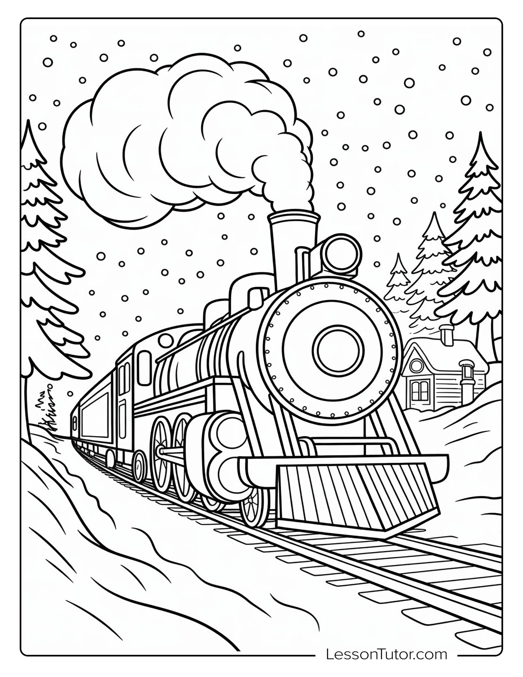 Bring the magic of The Polar Express into your home with these 5 printable, high-resolution coloring pages in PDF format, perfectly designed for A4 paper size. Ideal for both kids and adults, this free-to-download collection lets you relive the awe and wonder of the beloved holiday adventure, one color at a time. From a majestic train traveling through heavy snowfall to a breathtaking scene of the steam engine crossing a massive bridge under the moonlit sky, each page invites you to believe in the journey and create your own festive masterpiece!