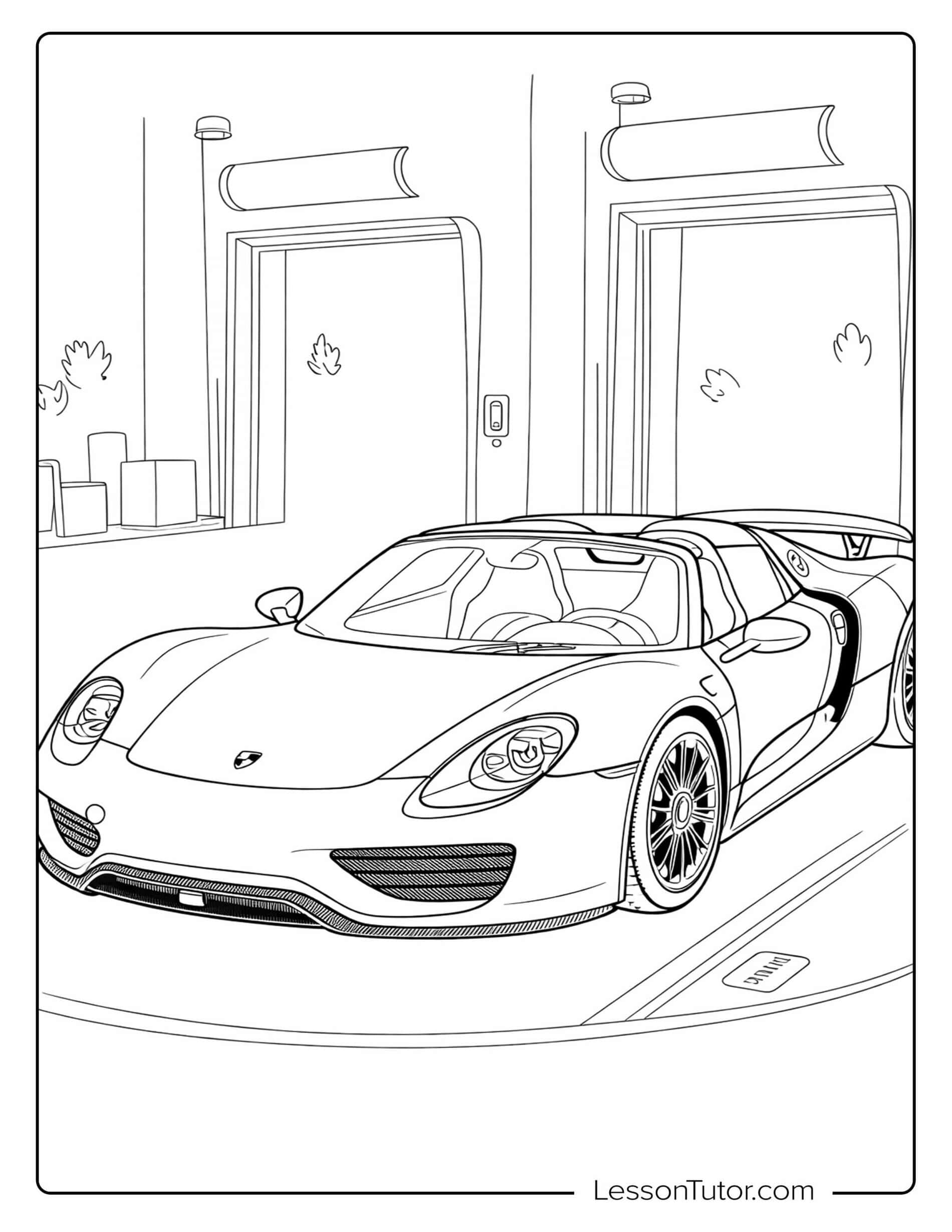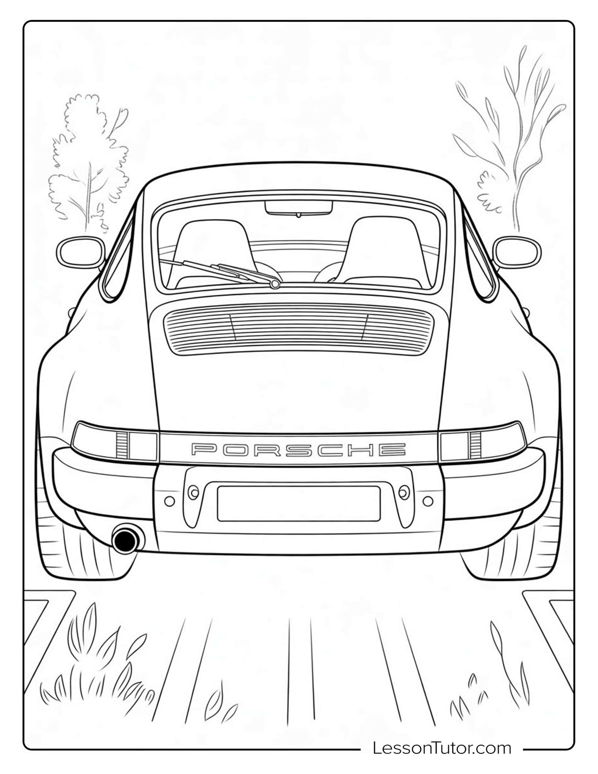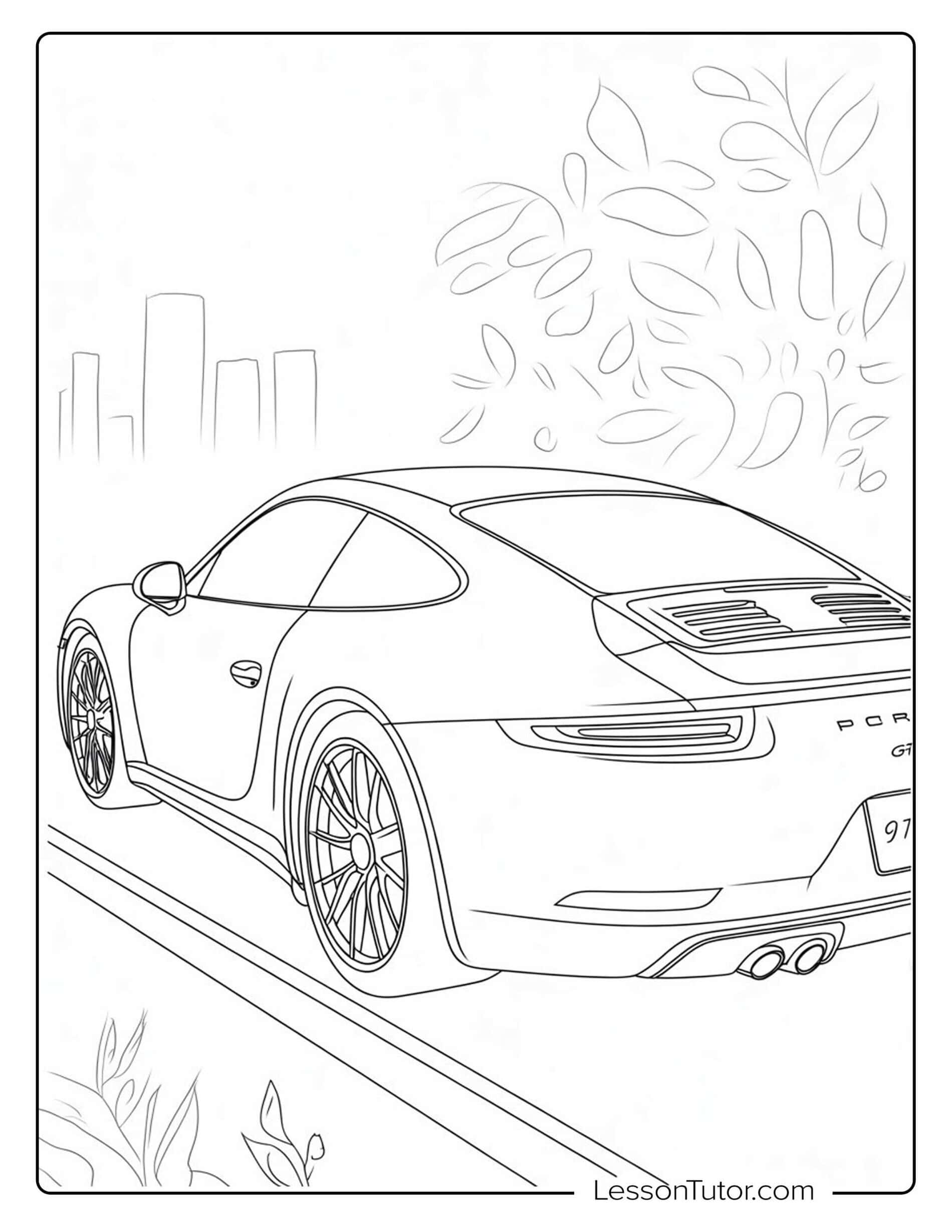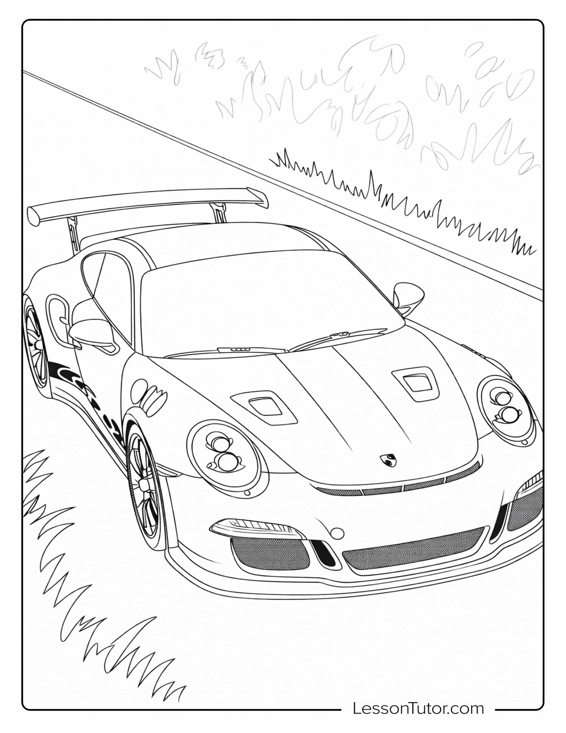 This detailed set of Porsche Coloring Pages features full car profiles, driving scenes, and close-up design elements that encourage imaginative coloring. After completing their artwork, children can cut out the cars to create wall posters, design racing-themed greeting cards, or assemble simple car collages. Finished pages can also be combined into a small booklet dedicated to sports cars and vehicle design. These ideas help turn Porsche coloring pages into creative projects that go beyond standard coloring activities.