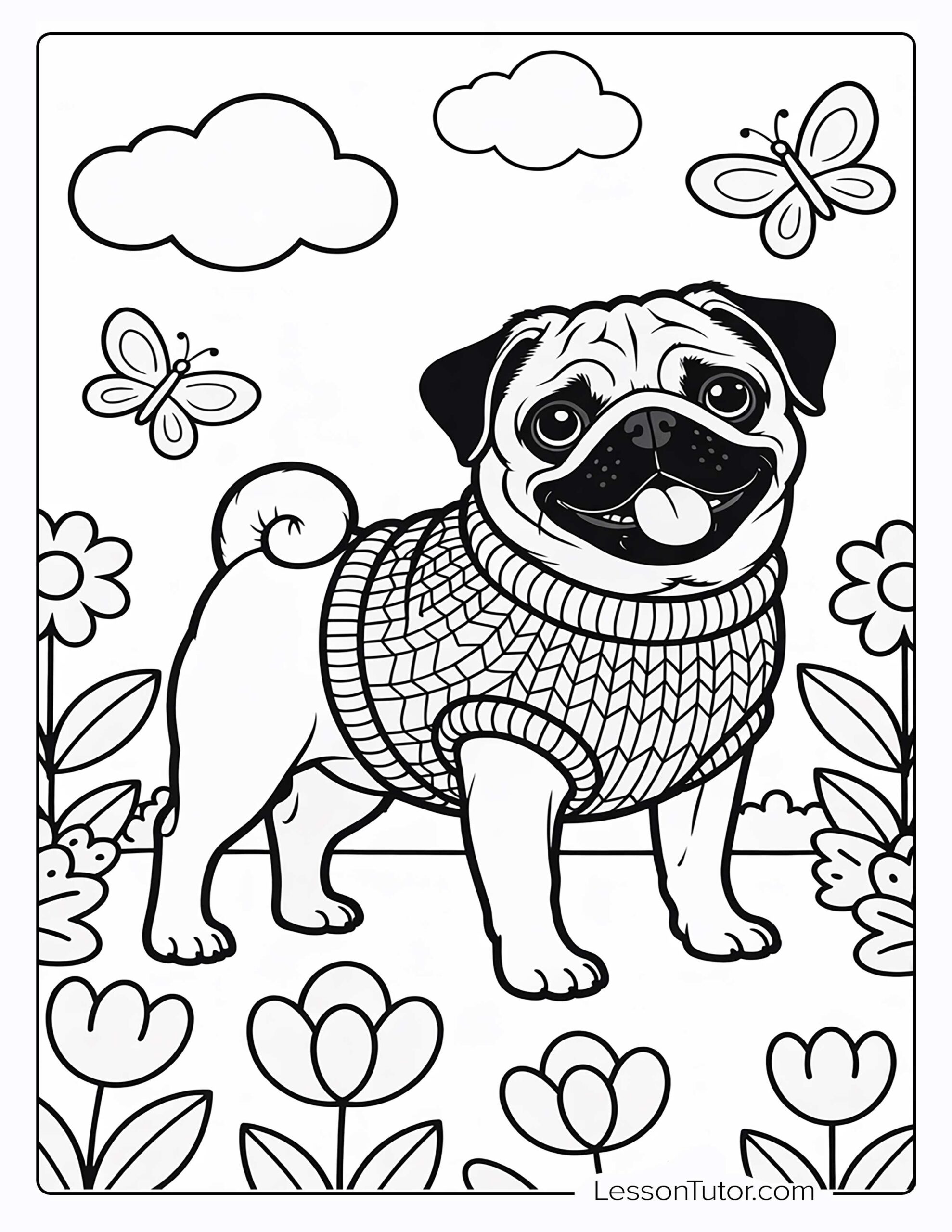 This charming set features a variety of delightful pug moments that capture their playful and affectionate personality. You’ll color a pug sleeping soundly on a cozy pillow, another joyfully exploring a sunny garden, and scenes showcasing pugs with expressive faces and heart-melting smiles. Each page invites creativity while offering a soothing, screen-free activity. Whether you enjoy simple outlines, cute cartoon styles, or more detailed pug illustrations, these coloring pages provide endless opportunities for imaginative fun, relaxation, and learning.