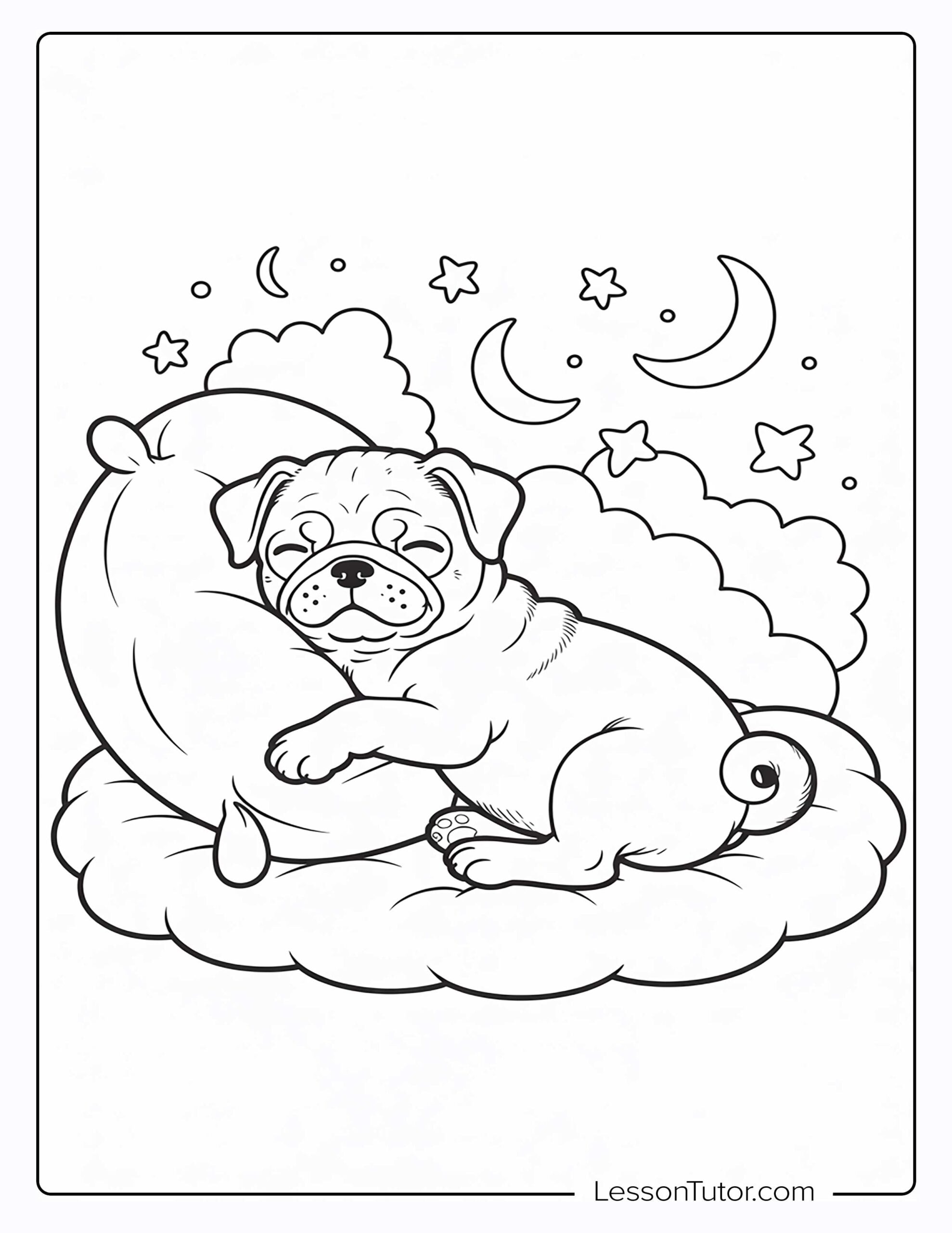 Step into a world of charm and personality with this delightful collection of 10 high-quality Pug Coloring Pages, designed to spark creativity and bring smiles to artists of all ages. From a pug peacefully napping on a soft, cozy pillow to another happily bounding through a bright garden, each illustration highlights the lovable, expressive nature of this iconic breed. You’ll also discover pages featuring pugs with big, round eyes and adorable wrinkles, full of character and warmth. This cheerful set combines relaxation and fun, making it a perfect activity for kids, families, and pug lovers everywhere.