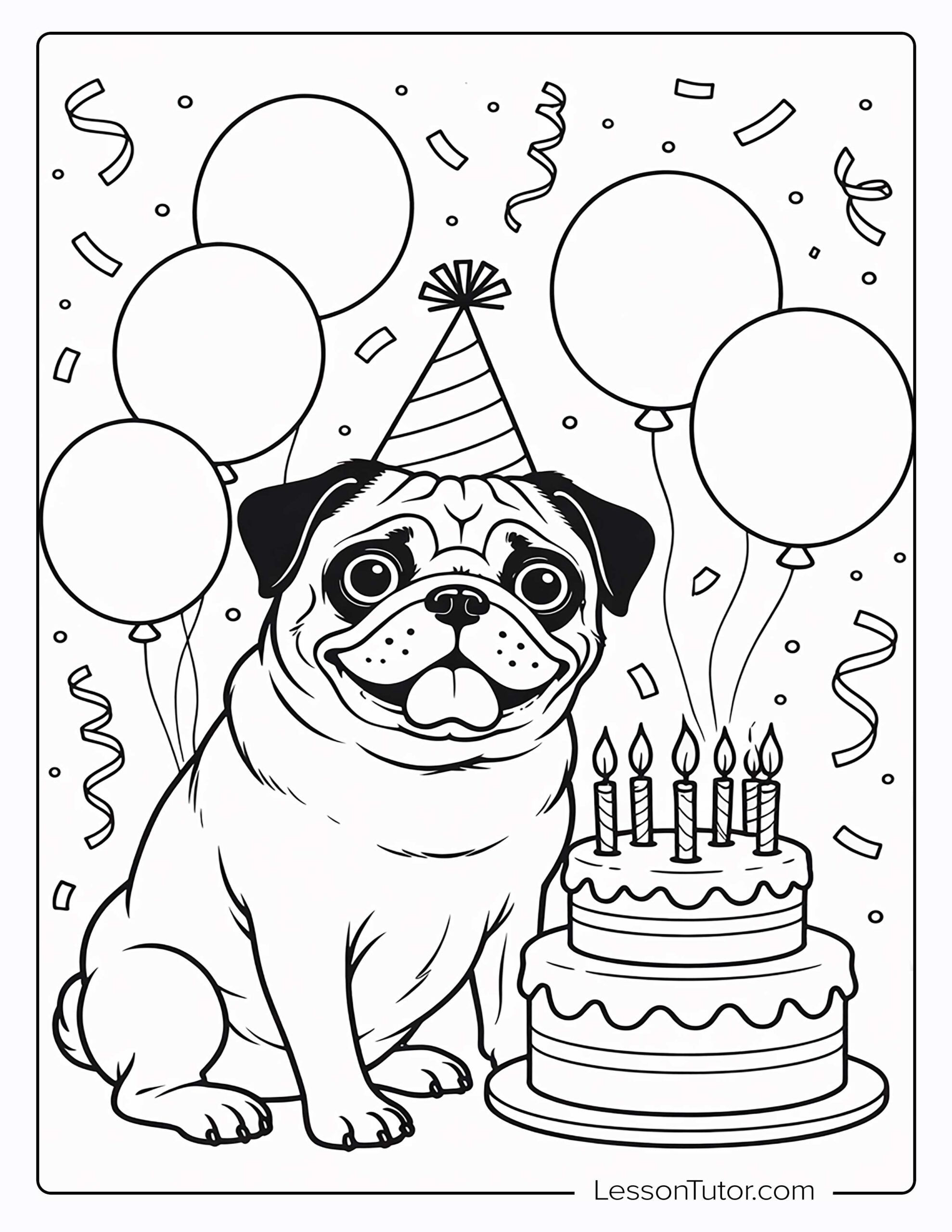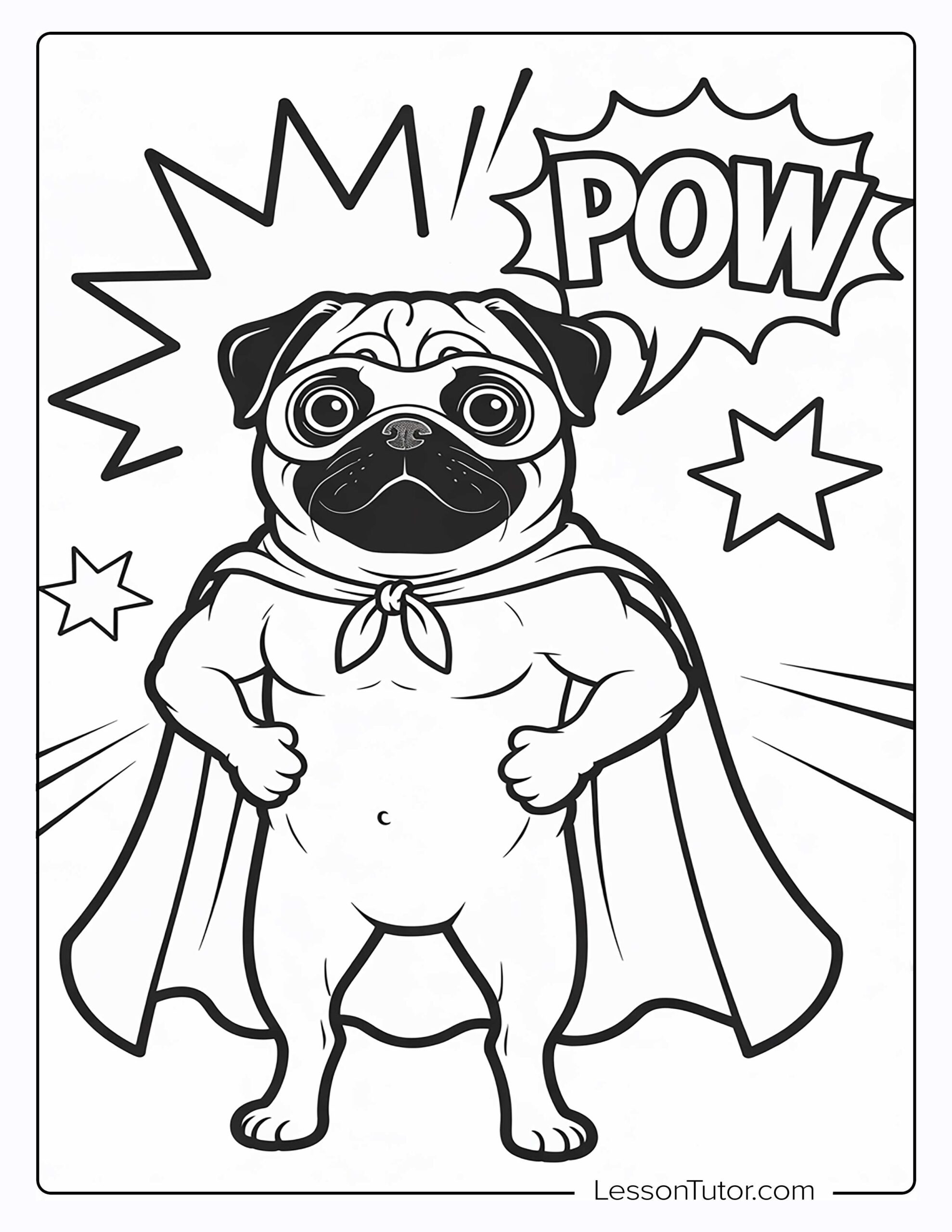 Download 10 adorable Pug Coloring Pages in high-resolution PDF format, perfectly sized for A4 paper and completely free to enjoy. This playful collection includes everything from a pug wearing a festive party hat to a curious pug leaning out of a car window, taking in the world with wide-eyed excitement. You’ll also find a brave little pug dressed like a superhero, ready to leap into your imagination. Print these pages anytime for a creative, calming activity that celebrates the joyful spirit of pugs. Grab your crayons and bring these lovable pug scenes to life.