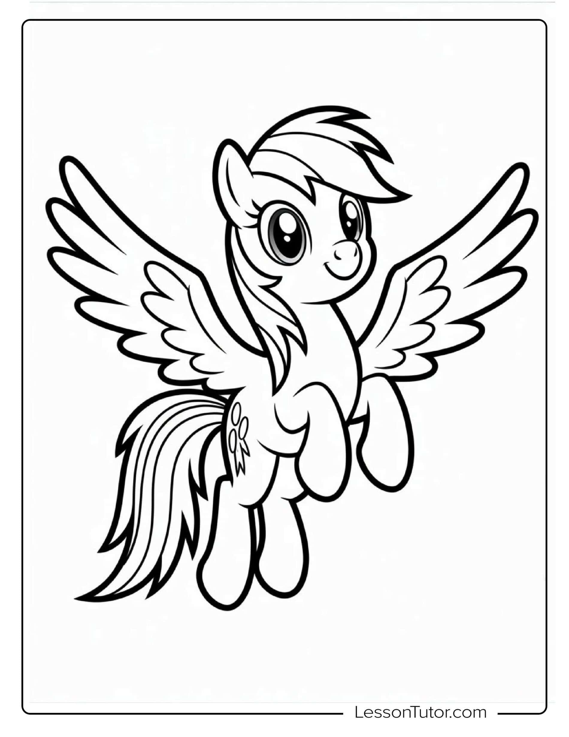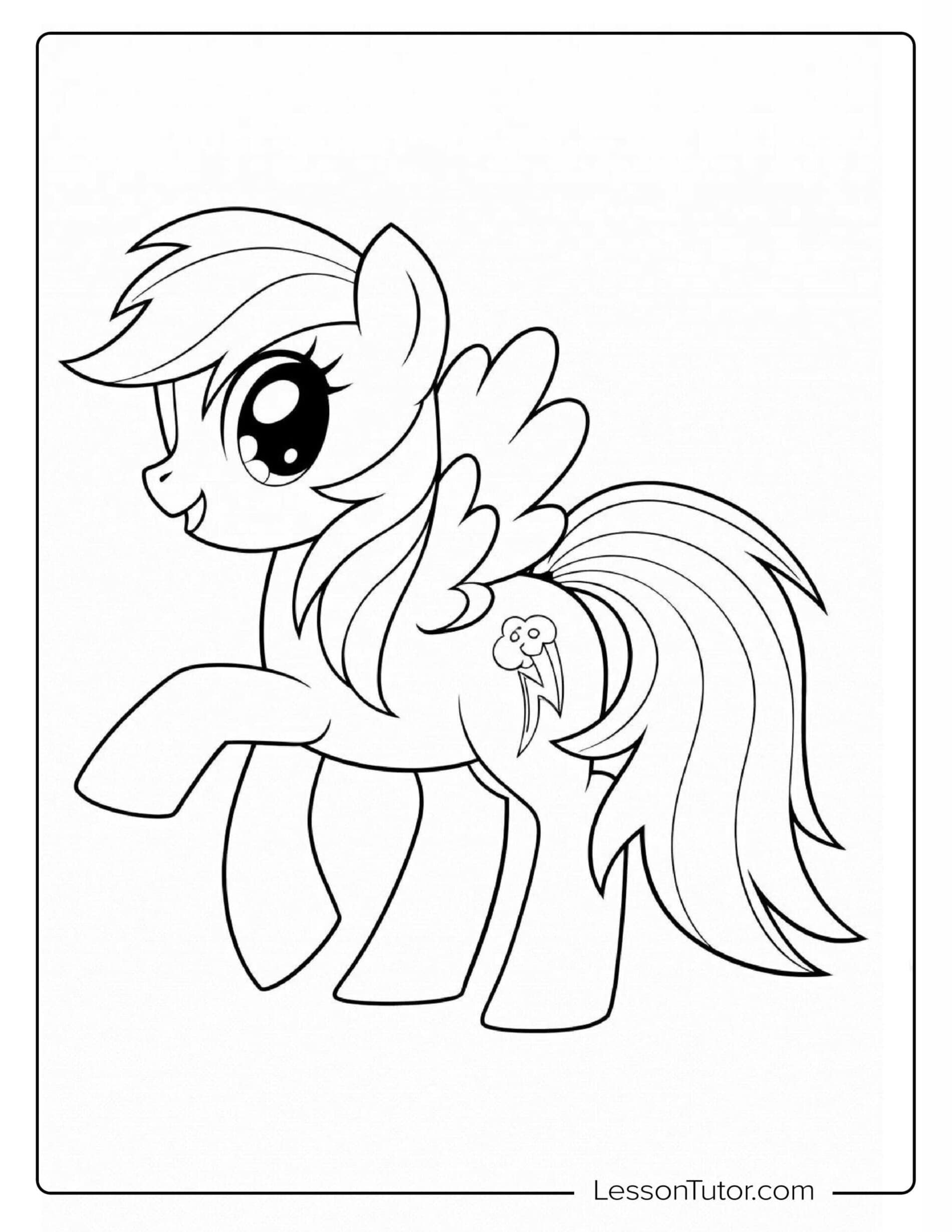 Step into a fast, energetic world with this collection of 5 high-quality Rainbow Dash coloring pages, inspired by bold poses, sporty details, and expressive character moments. From full-body action stances to close-up portraits that highlight signature features, wings, and mane styles, each page focuses on clear outlines and recognizable character details. You’ll also find designs with motion lines, playful backgrounds, and small elements that work well for experimenting with bright colors and dynamic combinations. Great for kids and anyone who enjoys character-themed coloring, this set turns Rainbow Dash’s energetic style into a fun creative activity.
