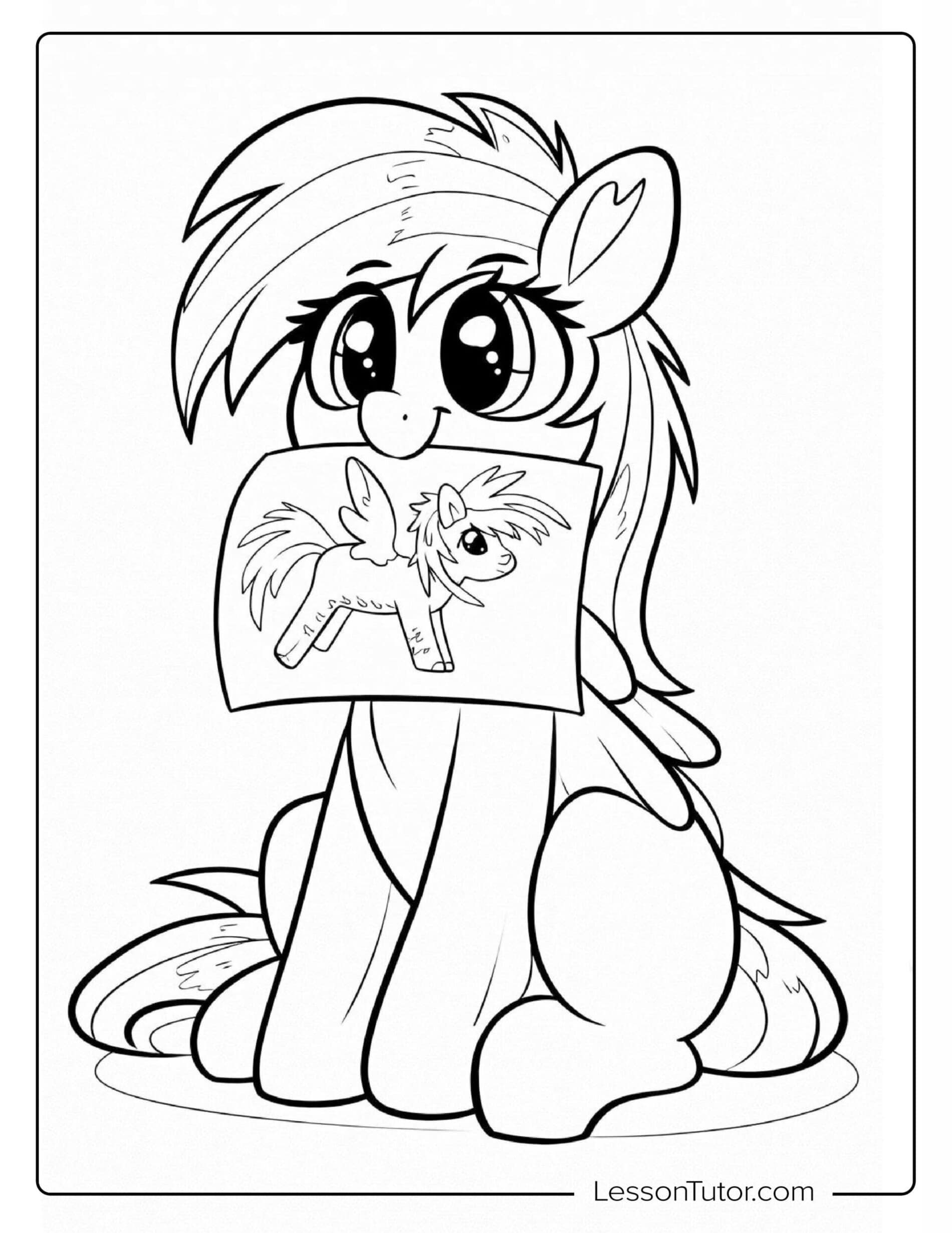 This playful set features Rainbow Dash in different poses, from full action scenes to close-up character details. Each page works well for simple crafts where kids can practice coloring patterns, choosing color mixes for wings and hair, and adding small decorative touches. You can also cut out finished characters to make small posters, room decor, or simple paper figures for play. Mixing character art with easy crafts, this collection fits well with creative play and light hands-on projects.