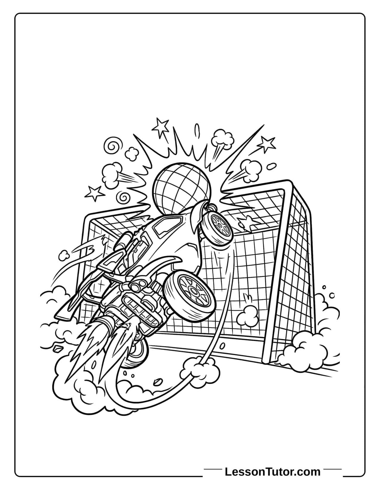All 5 Rocket League coloring pages are high-quality black-and-white line art formatted for US Letter paper and ready to print in one click.
