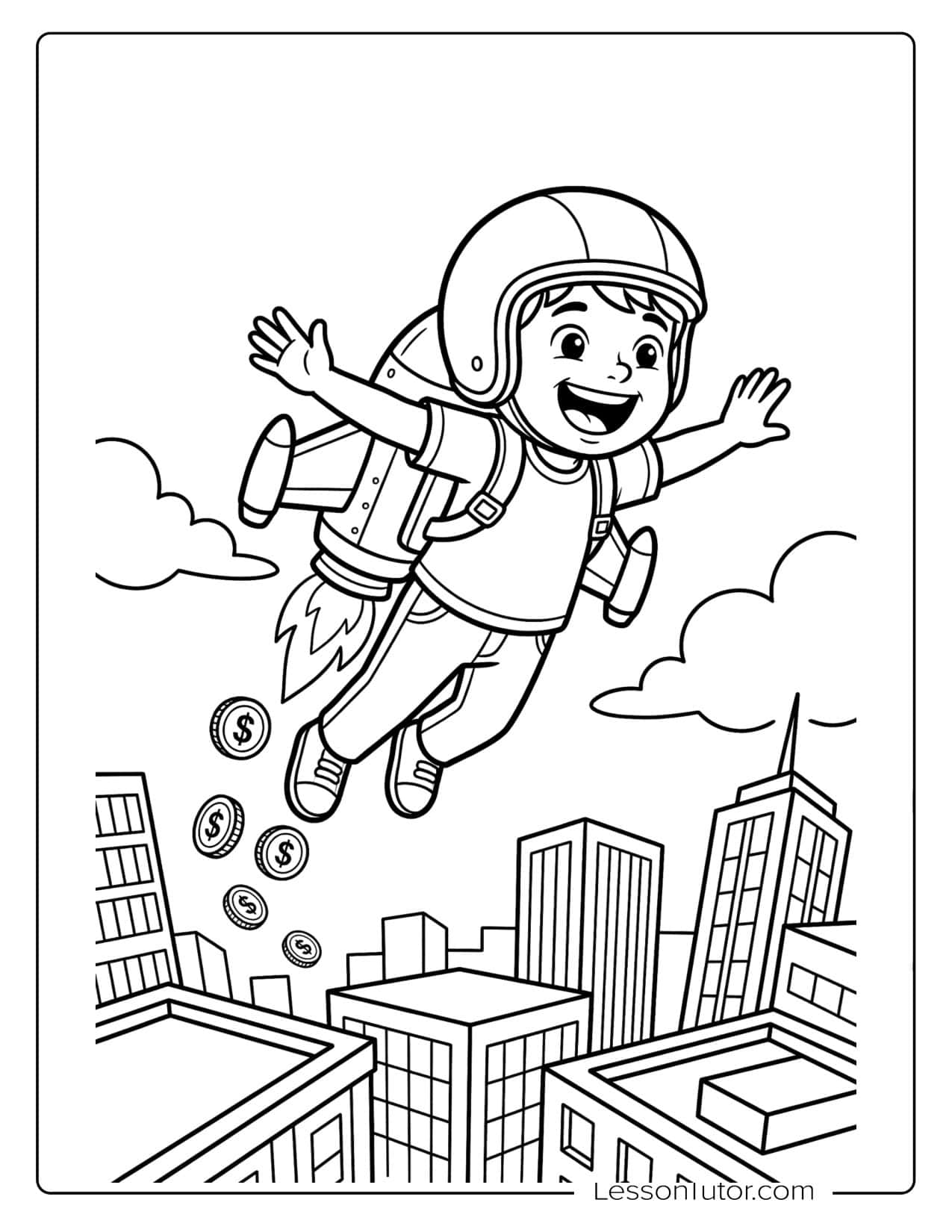 - Coin Trail Mobile: Color the jetpack page, cut out the trailing coins, and hang them from a string to create a glittering coin mobile.