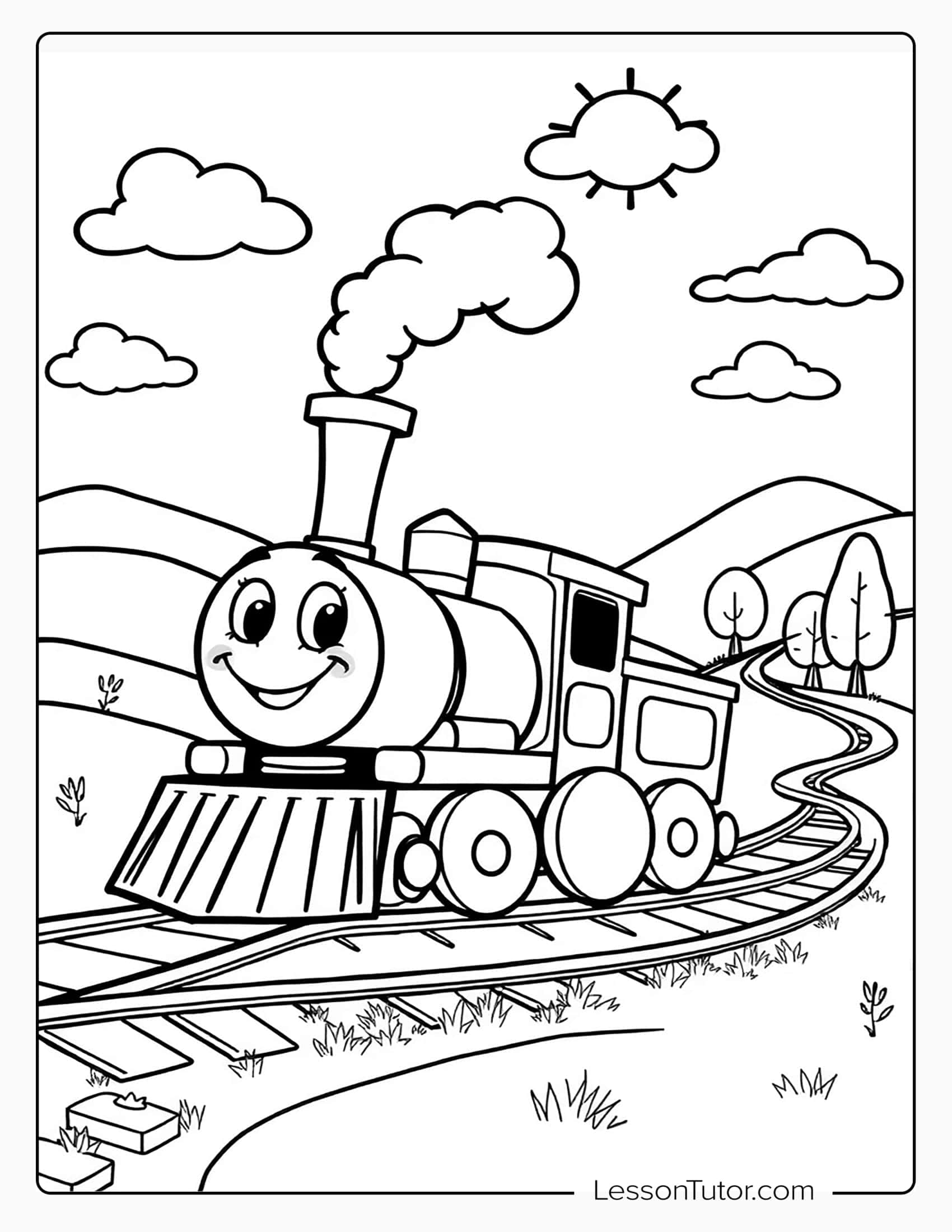 All aboard for a joyful ride through this charming collection of 5 train-themed coloring pages, celebrating the wonder and excitement of railway adventures! From a cheerful train with large, expressive eyes and a wide, happy smile to a majestic locomotive crossing a historic stone bridge, each illustration captures the magic of travel and imagination. These pages invite kids and adults to color their way through scenes of motion, history, and fun perfect for sparking creativity or simply relaxing with a nostalgic touch. Whether you love trains or just enjoy coloring something full of character, every page promises a journey worth taking!