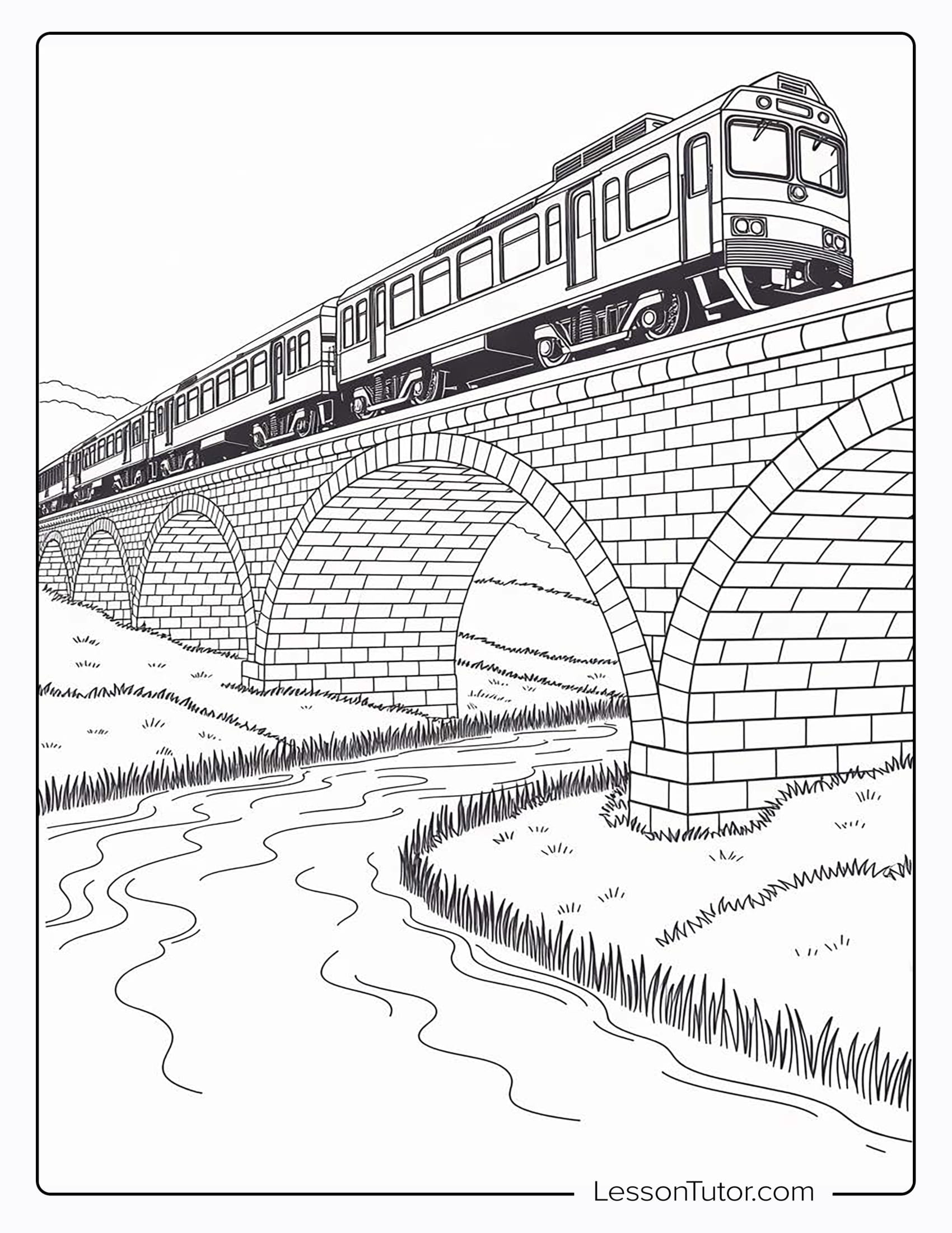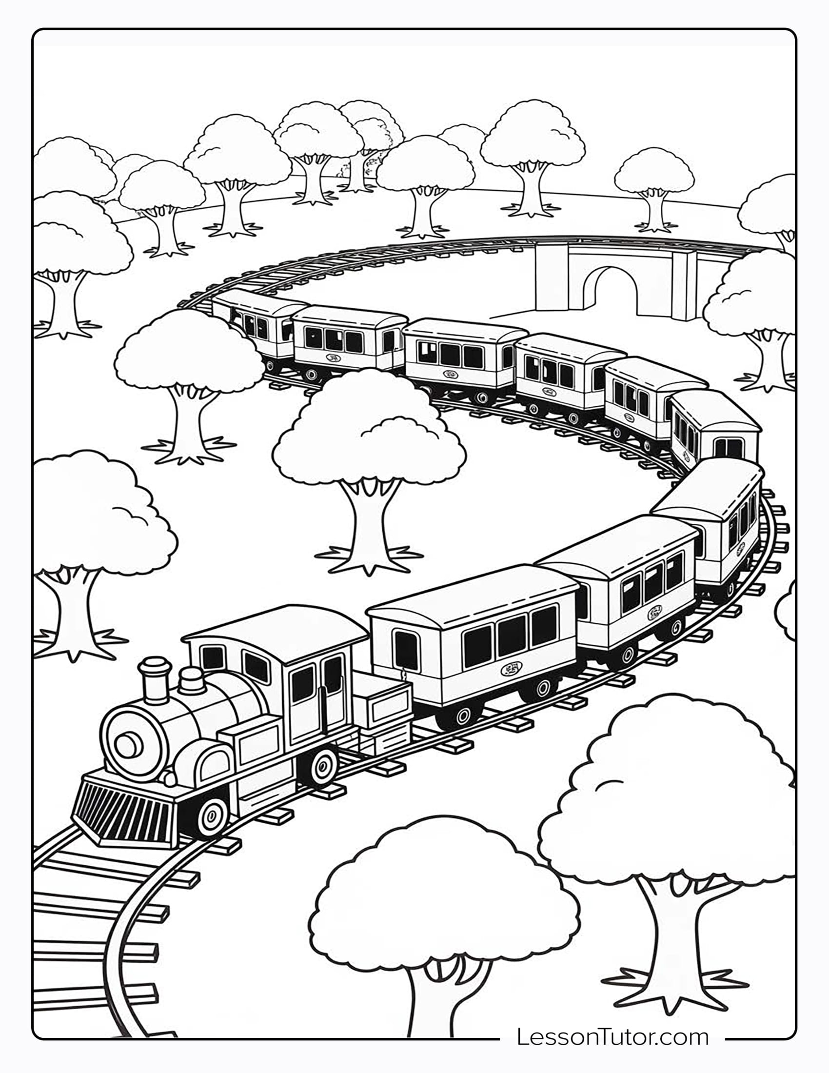 This delightful collection features a variety of train-themed scenes, from a friendly locomotive puffing along a countryside track to one crossing a grand stone bridge or winding through lush forest hills. You’ll find a cheerful train with big, expressive eyes and smiling passengers waving from the windows, along with peaceful landscapes that capture the magic of travel. Whether you’re a fan of trains or simply love to color, these pages bring the excitement of motion and discovery to life. With a mix of simple outlines and detailed designs, this set promises endless hours of creativity, relaxation, and fun for all ages.