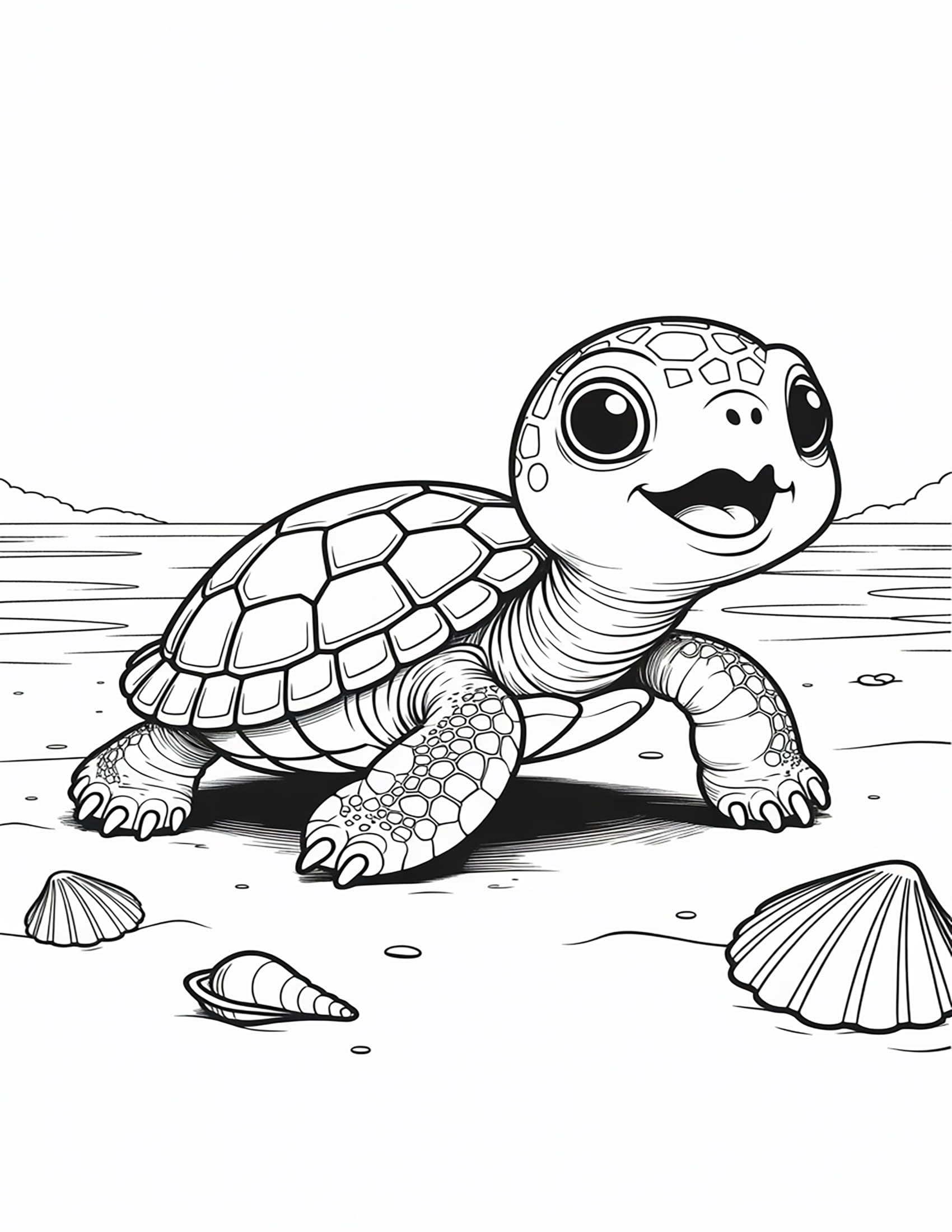 Dive into the adorable underwater world of turtles with this heartwarming collection of 5 high-quality coloring pages, perfect for ocean lovers of all ages! From a cute baby turtle with big, sparkling eyes and a cheerful smile to a happy little sea turtle with wide, expressive eyes and an open, joyful mouth, each page captures the innocence and charm of these beloved creatures. Explore scenes of baby turtles gliding through gentle waves, playing near coral reefs, and discovering their ocean home for the first time. These pages offer a fun, relaxing, and educational way to celebrate the magic of marine life one splash of color at a time!