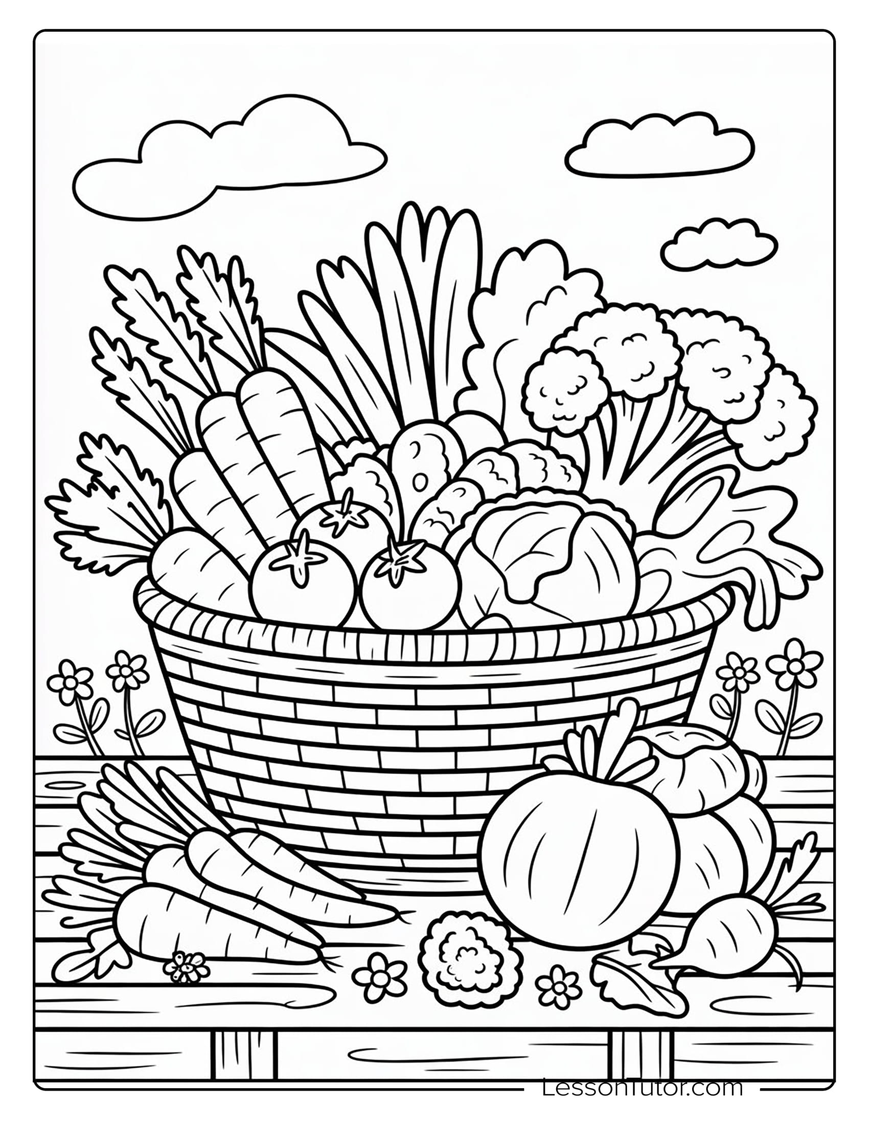 This collection celebrates the charm and variety of vegetables through a series of delightful and nature-inspired illustrations. Picture an adorable, cheerful carrot in a lively garden, surrounded by playful details and sprouting greenery, or a large, plump pumpkin in a rustic garden scene, resting among vines and autumn textures. You’ll also enjoy coloring a beautiful, abundant basket of fresh vegetables, overflowing with leafy greens, crisp roots, and vibrant produce. Whether you enjoy simple outlines, realistic harvest scenes, or detailed vegetable arrangements, these pages provide endless opportunities for creativity, learning, and artistic fun.