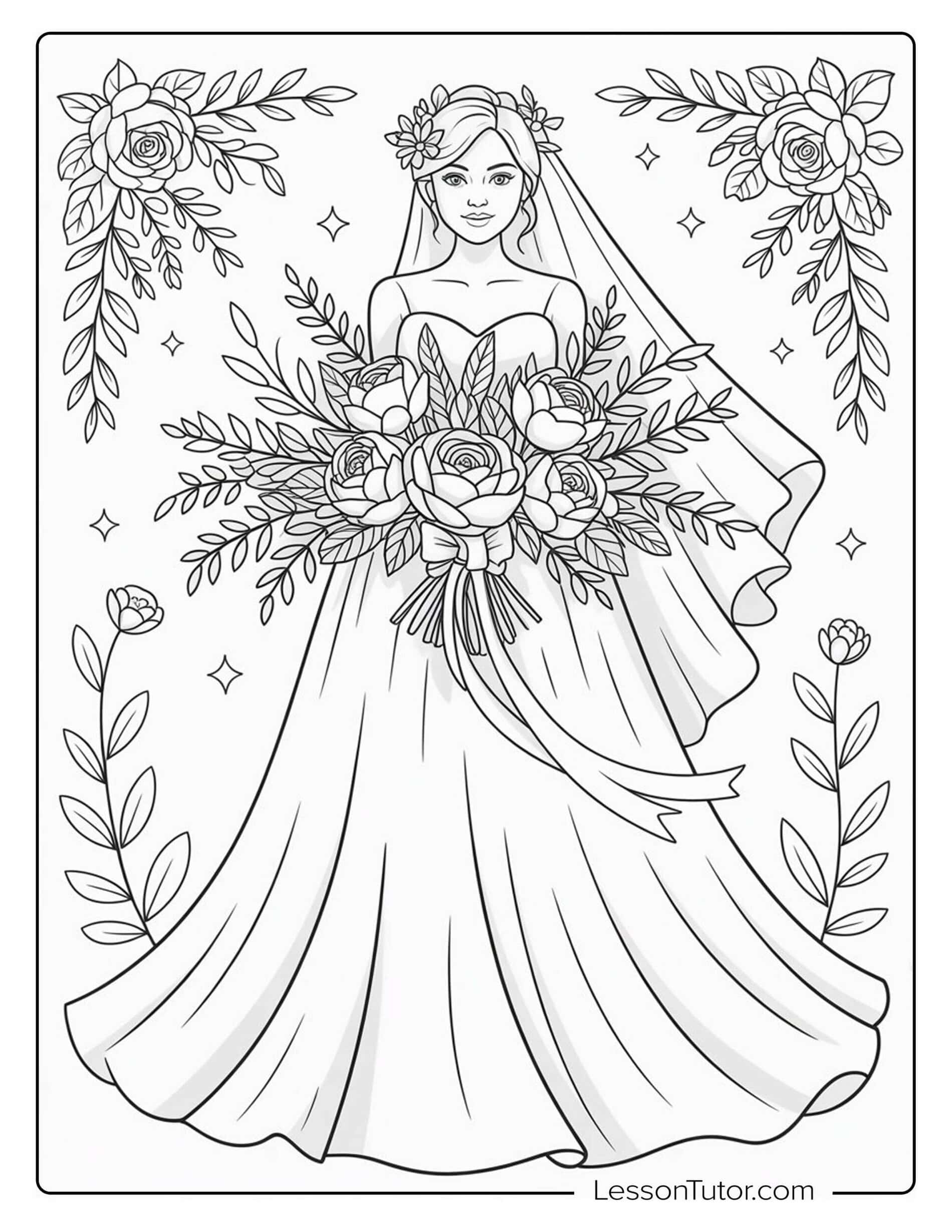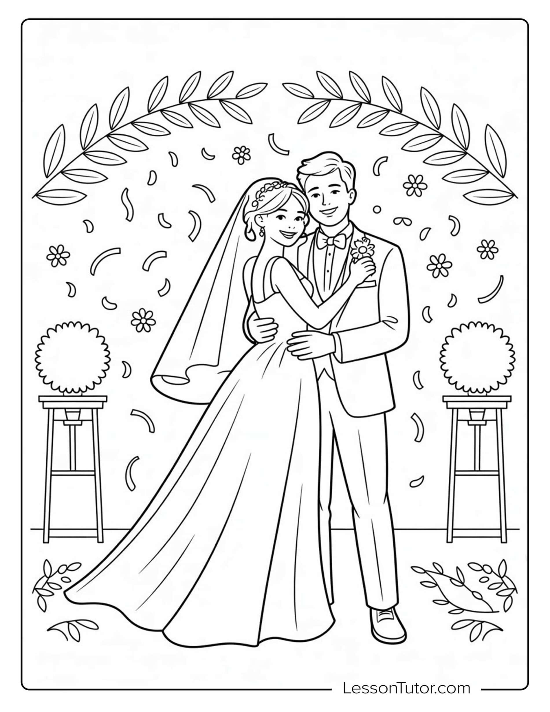 Download 10 free, high-resolution printable Wedding Coloring Pages and include a creative activity in your wedding plans. These pages can be placed at children’s tables during receptions, offered as part of activity stations, or given as small keepsakes for young guests. Parents and event organizers often use wedding-themed coloring pages to help children stay engaged in a relaxed and structured way. The set works well for individual coloring time or small group activities during wedding events.